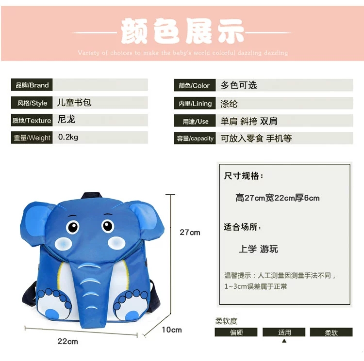 Package Includes: 1 x Blue Baby Elephant School Backpack